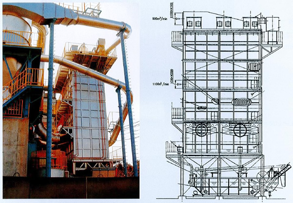 溜水式のスクラバー部(溜水に激しく接触させることでダストを処理する)と電気集塵部という2つの処理部を介して、ダストを含んだガスをキレイにする電気集塵機です。