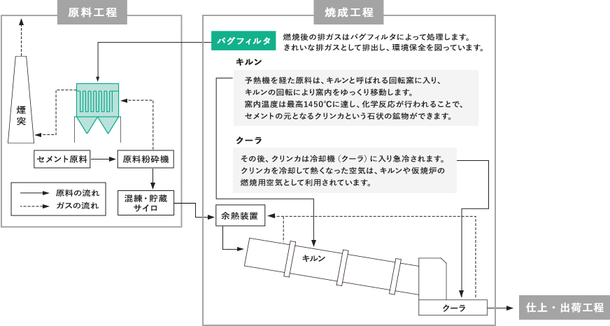セメント、鉄鋼、鉱業、化学、食品、ゴミ焼却施設・産業廃棄物処理等の製造過程における粉塵を除去します。セメント工場やごみ焼却場等工場の中で発生するゴミや塵をろ過し、清浄な空気を工場の外に放出します。