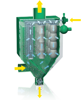 バグフィルタがろ過し、清浄な空気とダストに分け、